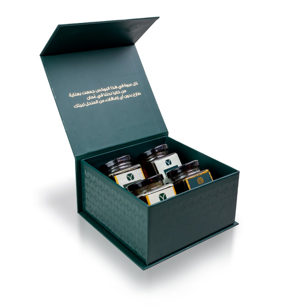 باقة نوادر العسل العُماني مصممة لمن يحب اكتشاف أكثر من نوع عسل في صندوق واحد.