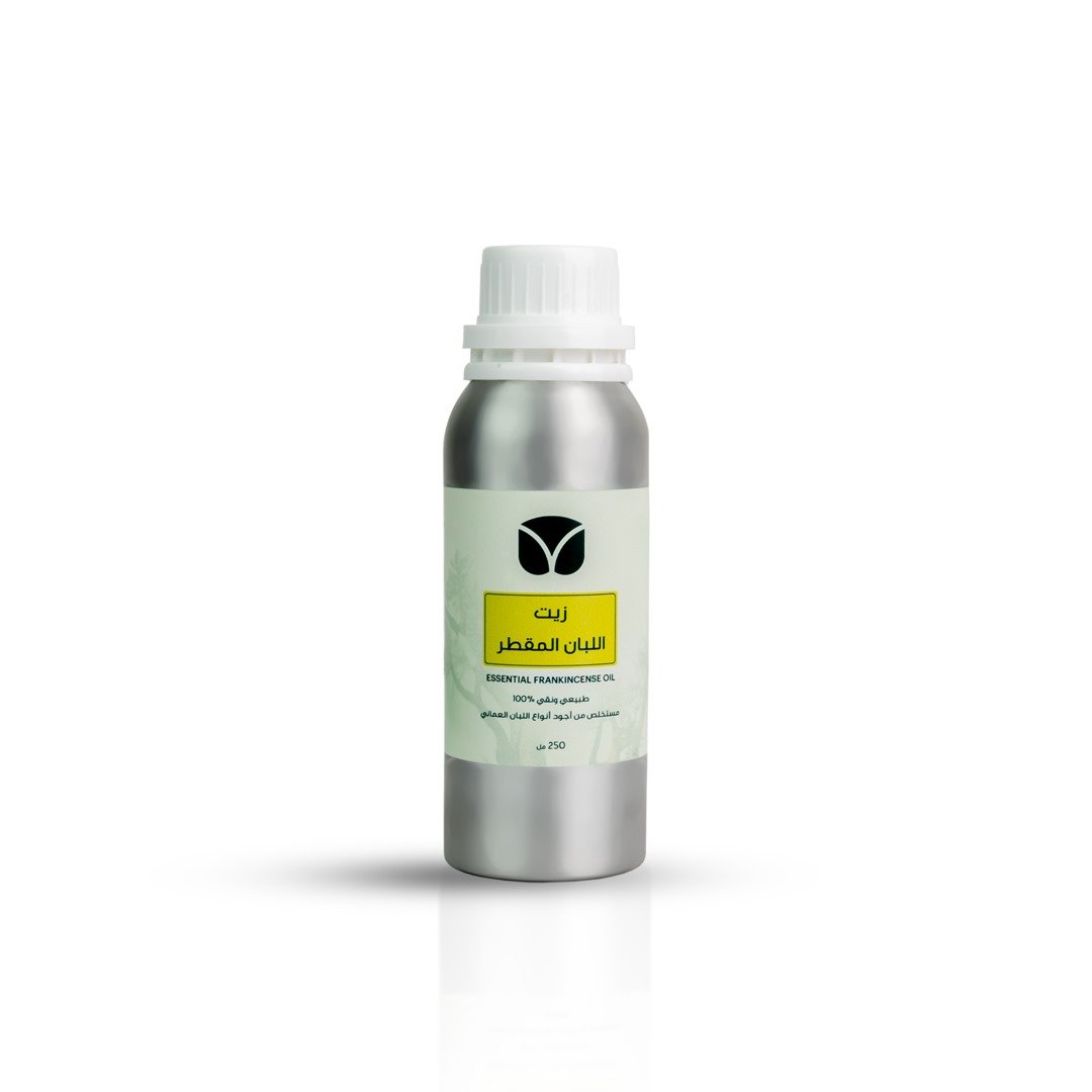 زيت اللبان المقطر من أشجار اللبان طبيعي وخالي من البتروكيماويات، والبارابينات، والألوان والمواد الحافظة الضارة، والزيوت المعدنية.